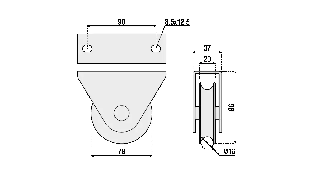 Track roller with outer support plate, round groove, 1 ball bearing