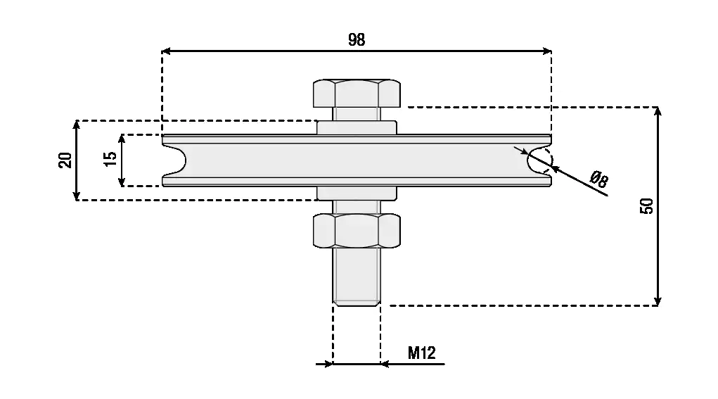 Steel roller for overhead doors, round groove, 1 ball bearing