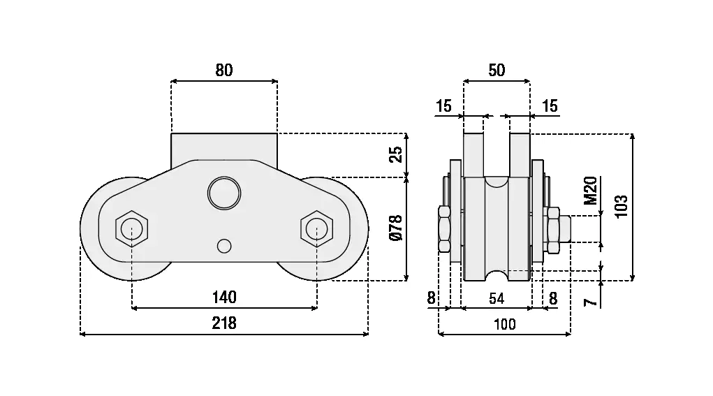 Double roller with round groove, compensation device and plates for welding on