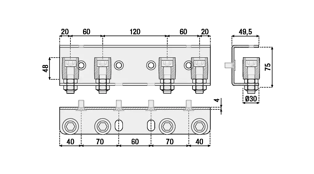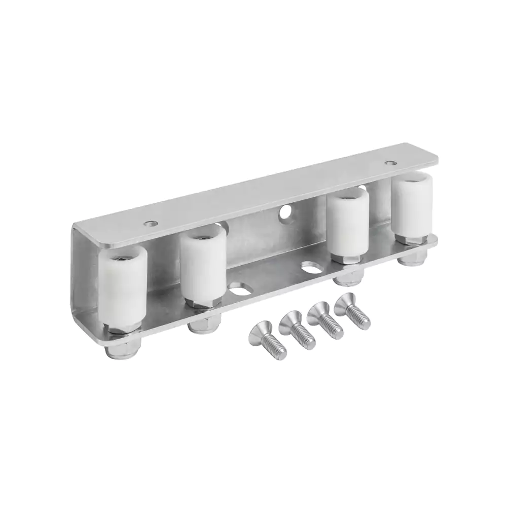 Galvanized guide bracket, with 4 nylon rollers