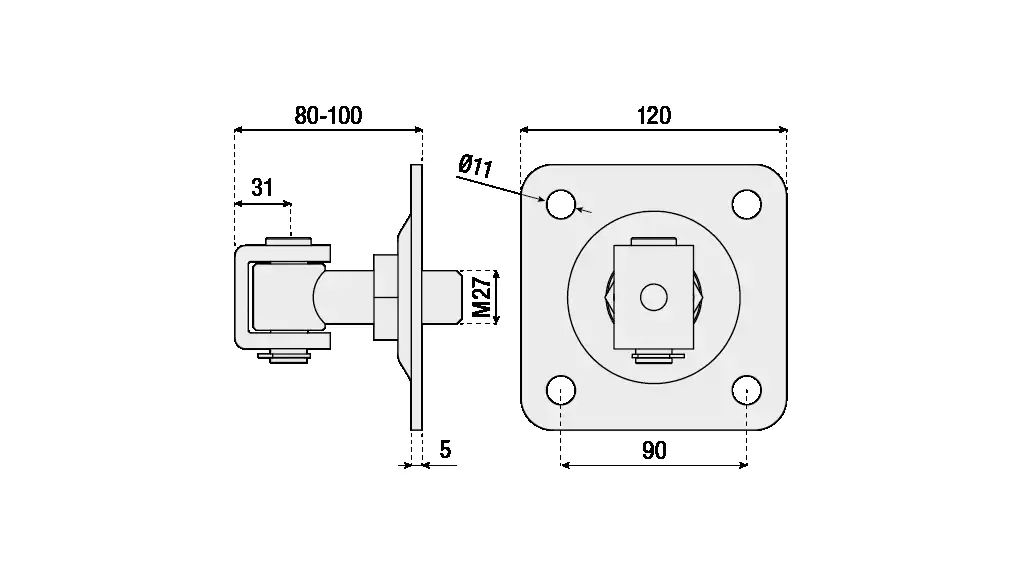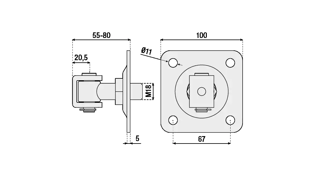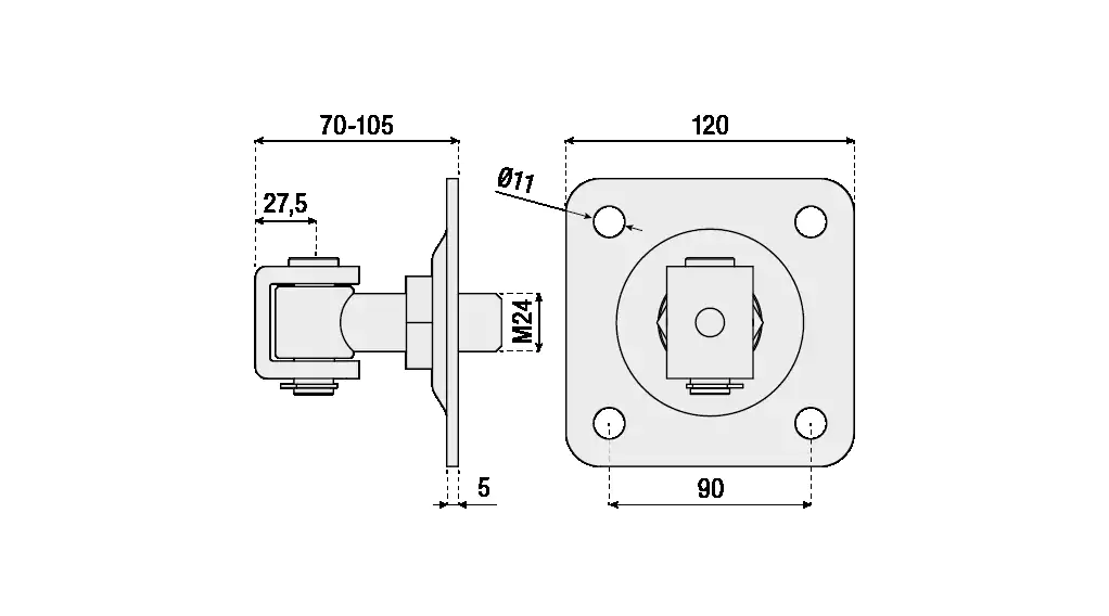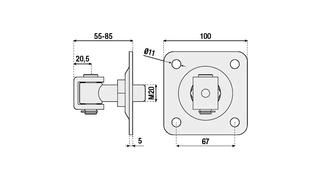 Adjustable with bracket and mounting plate with 4 holes and circlip