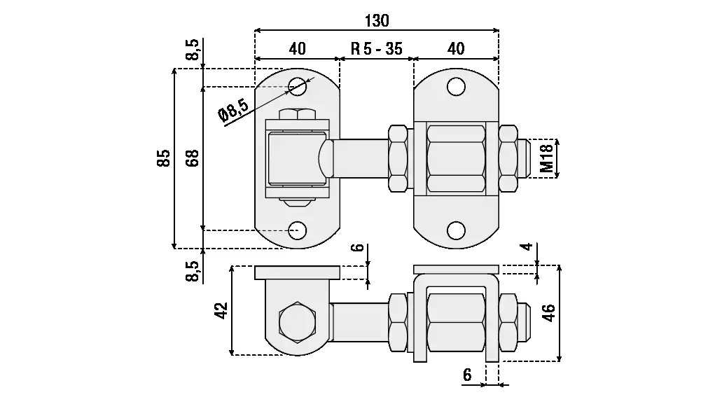 Adjustable joint for 180° openings