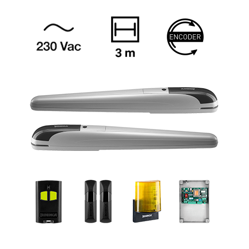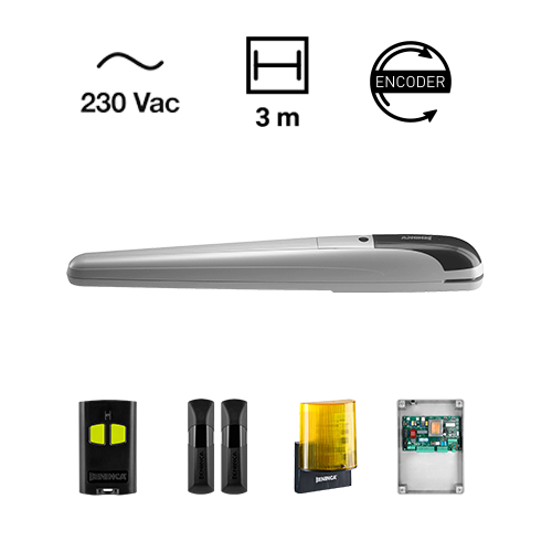 230 Vac self-locking electromechanical operator with encoder | The encoder offers maximum safety and precision in door movement | Reliable operation and smooth running | Easy installation thanks to 2 adjustable mechanical stops for opening and closing | Rolled screw with spherical cross-section (Ø 20 mm) | Unlocking from above with easy access