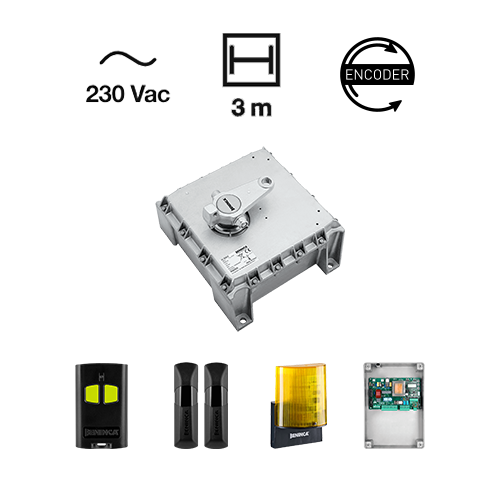 Self-locking electromechanical operator for very large doors with encoder | Operator in oil bath | Integrated mechanical end stop adjustable | The encoder device offers maximum safety and precision in door movement | To facilitate wiring and avoid problems caused by oxidation of electrical contacts, the model is also available with a 10 m cable