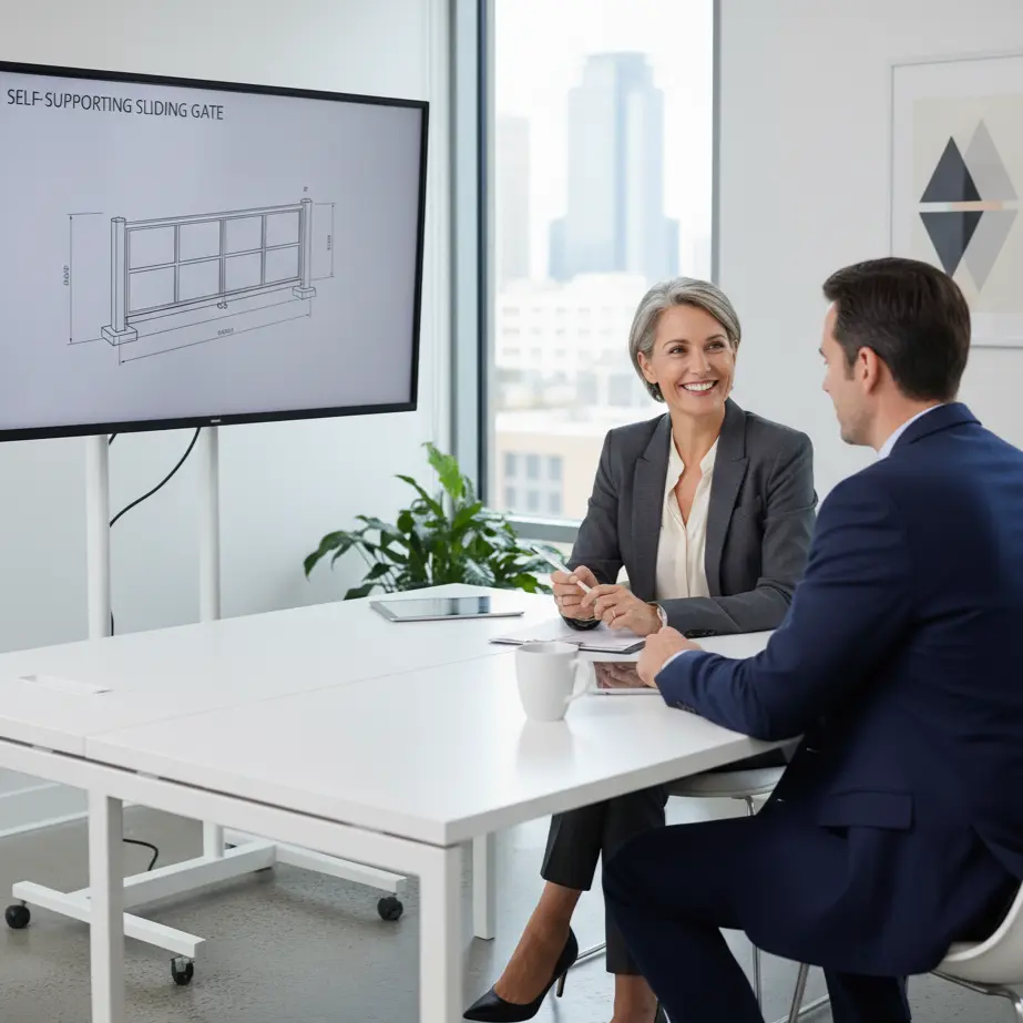 Professional advice and precise planning are crucial for the optimal implementation of a self-supporting sliding gate. Experts analyze your property, take individual requirements into account and suggest the right steel or aluminium door solution. Unsupported sliding doors are not only functional, but also aesthetically adapted to the architecture of your house or commercial property. The planning includes dimensions, choice of materials, electrical equipment and safety functions to ensure maximum stability, comfort and safety. Electrically cantilevered sliding gates can also be connected to smart home systems, enabling control via smartphone or remote control. Our company is headquartered in Cologne, but advises customers throughout Germany and the EU, so you benefit from our expertise, customized solutions and high-quality workmanship. With professional planning and individual advice, you will receive a durable, secure and convenient self-supporting sliding gate that is perfectly tailored to your needs. Rely on our experience and expertise for your door project.