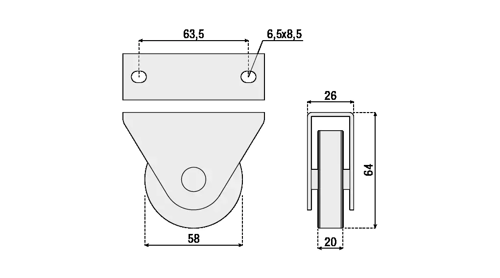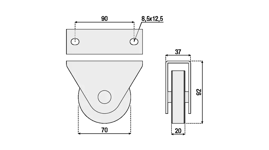 Laufrolle mit Außenstützplatte, Flachnut, 1 Kugellager