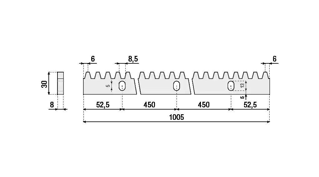 Zahnstange M4, mit Bolzen zum Anschweißen