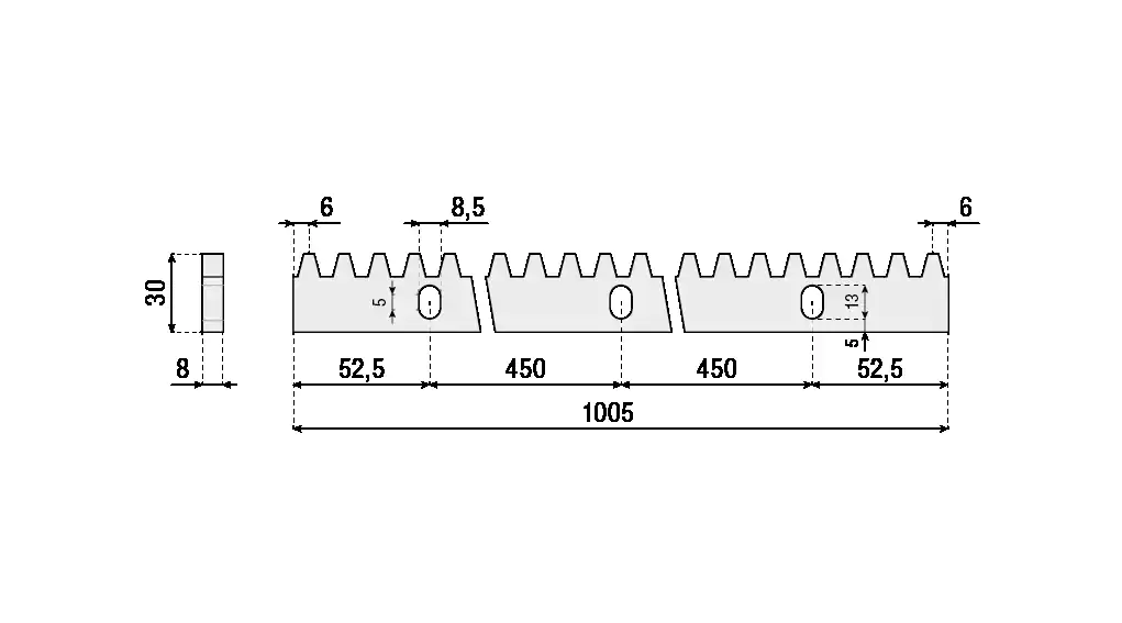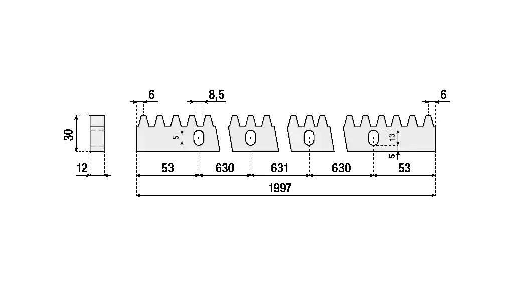 Zahnstange M4, mit Bolzen zum Anschrauben